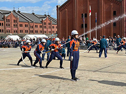 令和7年10月28日(火)、第26回全国女性消防操法大会が横浜市の「横浜赤レンガ倉庫イベント広場」にて開催され、各都道府県から選抜された消防隊により、消防操法の技術が競われました。