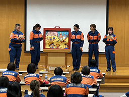大会には、96名の女性消防団員が参加し、活動事例の紹介や花火教室の「紙芝居」、乳児救命講習、災害ボランティア活動について発表するほか、県内各地の女性消防団員の日頃の活動をPRする掲示や配布物、広報誌などを展示しました。